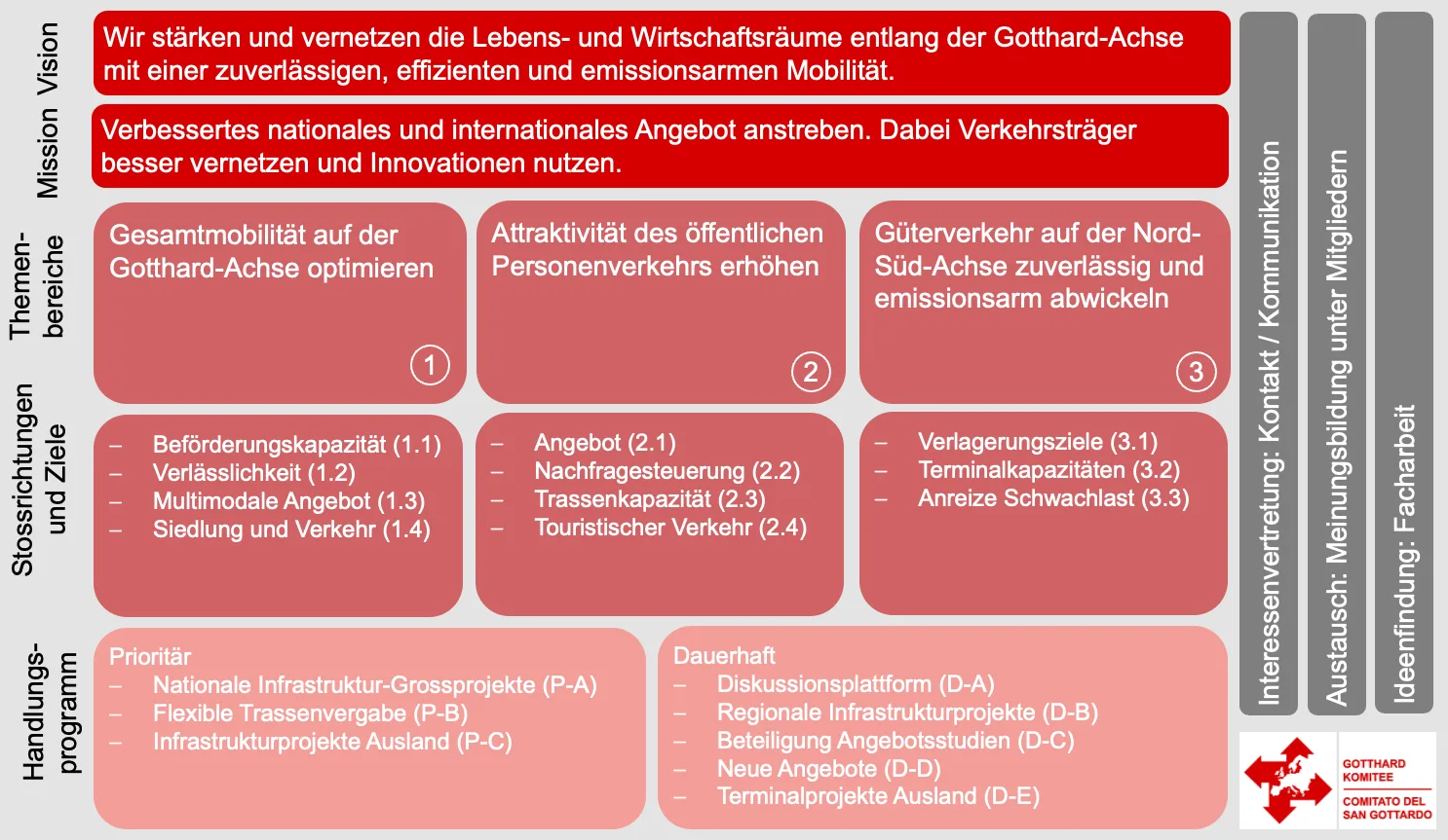 Die Arbeit des Gotthard-Komitees bewegt sich in folgenden drei Themenfeldern: